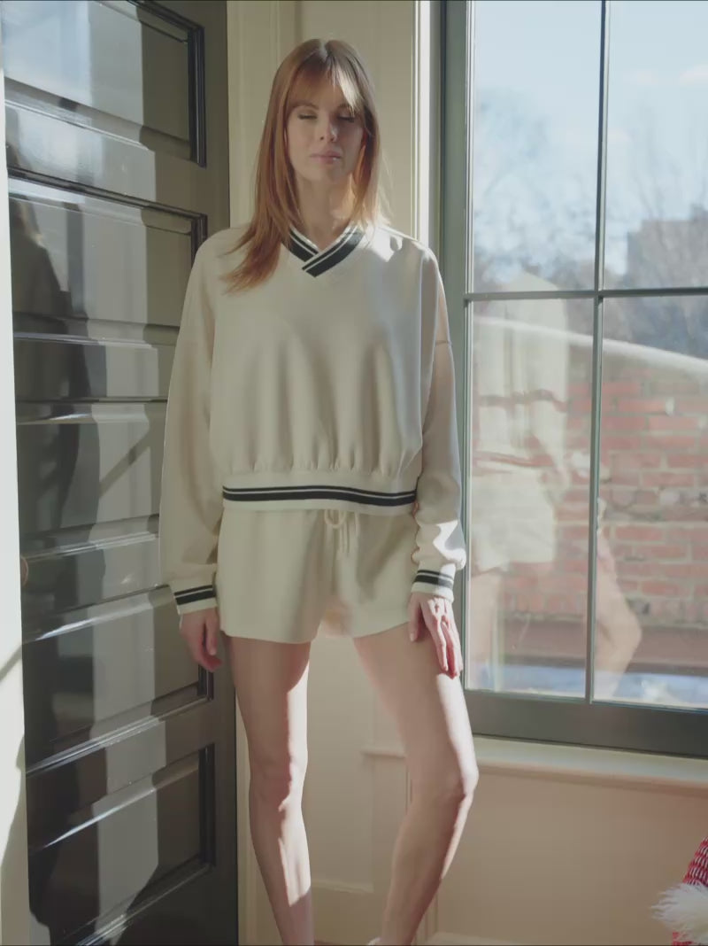 Varsity V-Neck Soft Sweatshirt - Ivory Black