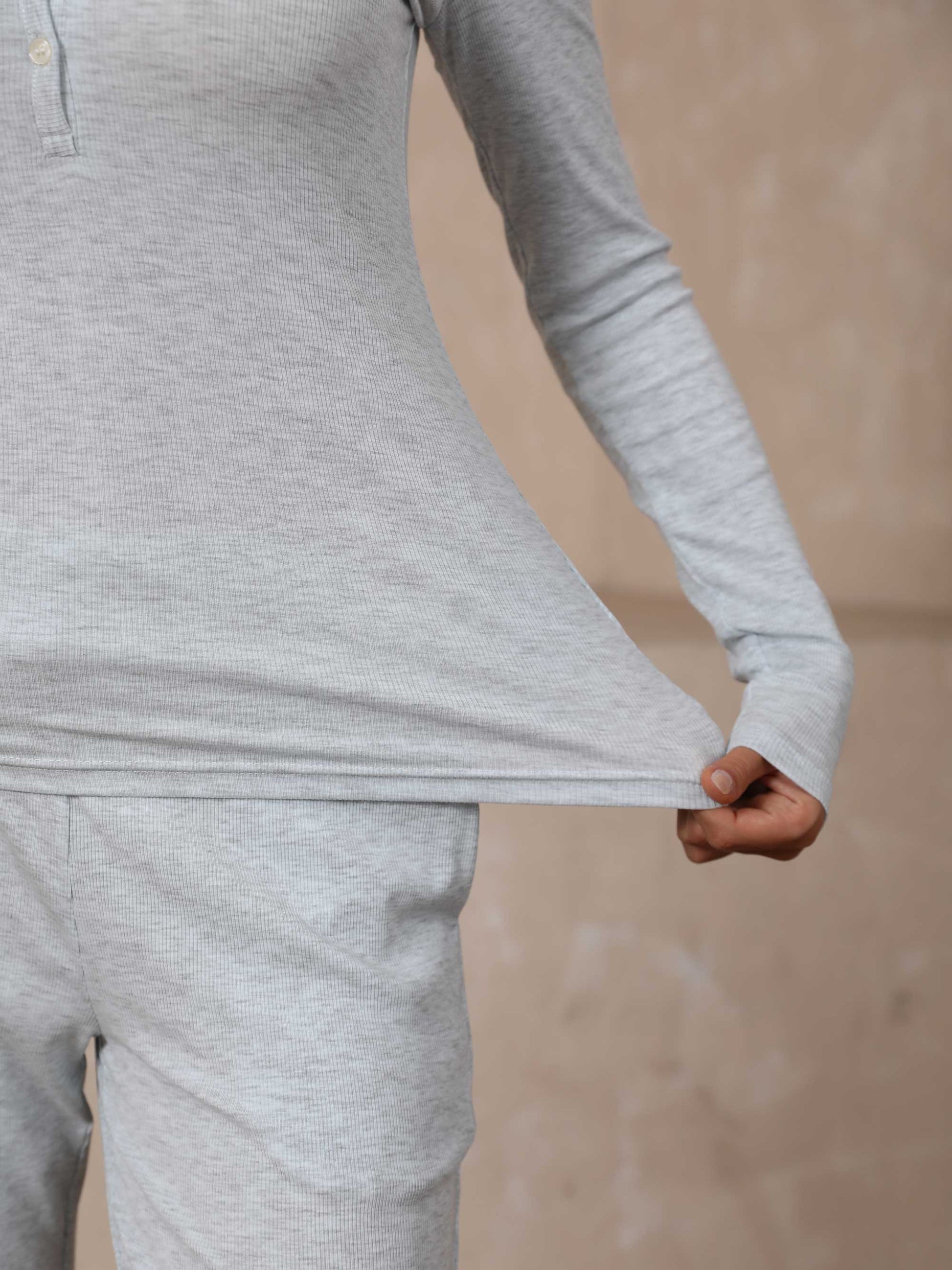 - Airy Soft Henley Long Sleeve Top & Pants 2-Piece Set