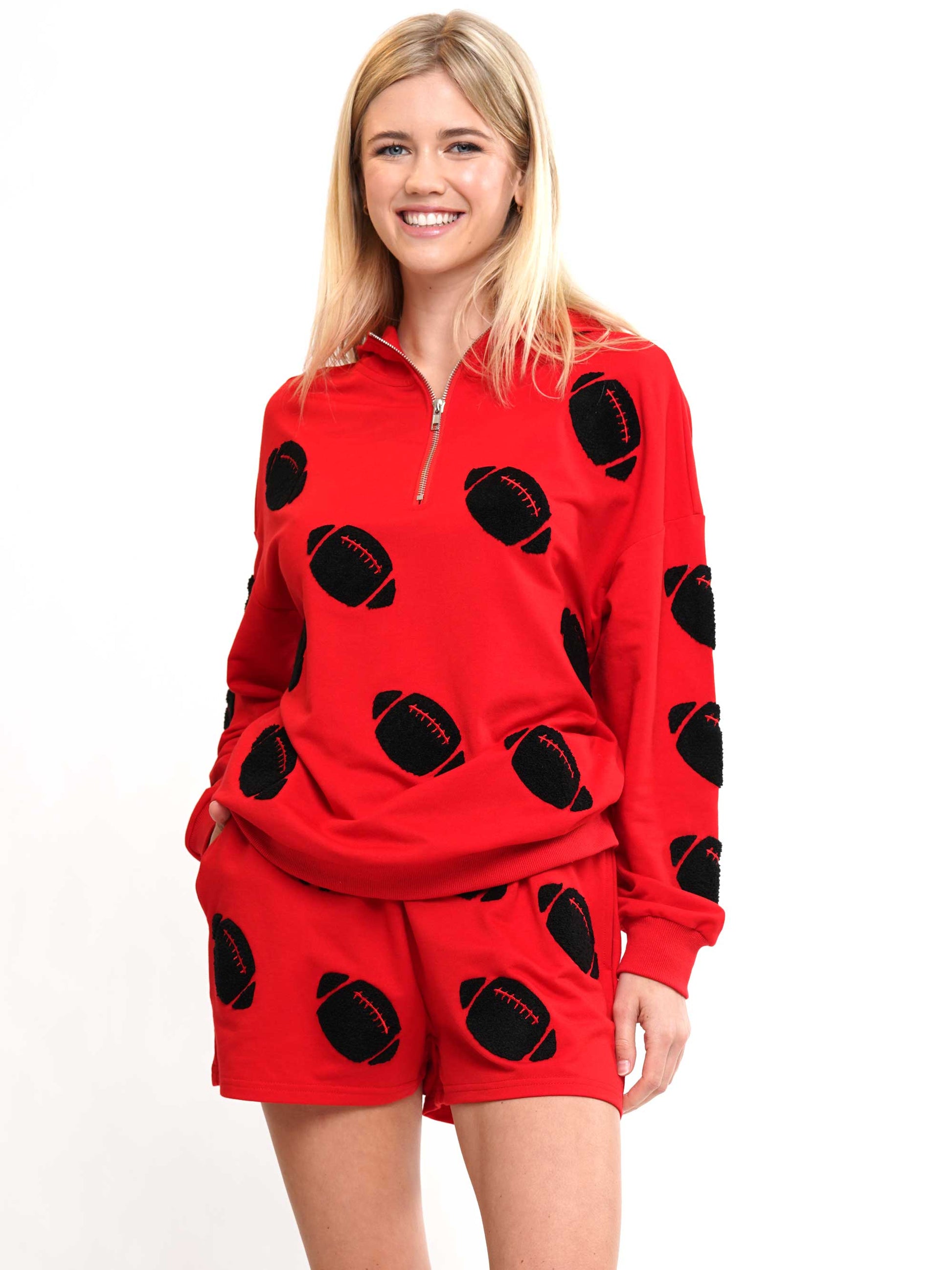 - Football Chenille Hoodie & Shorts Set