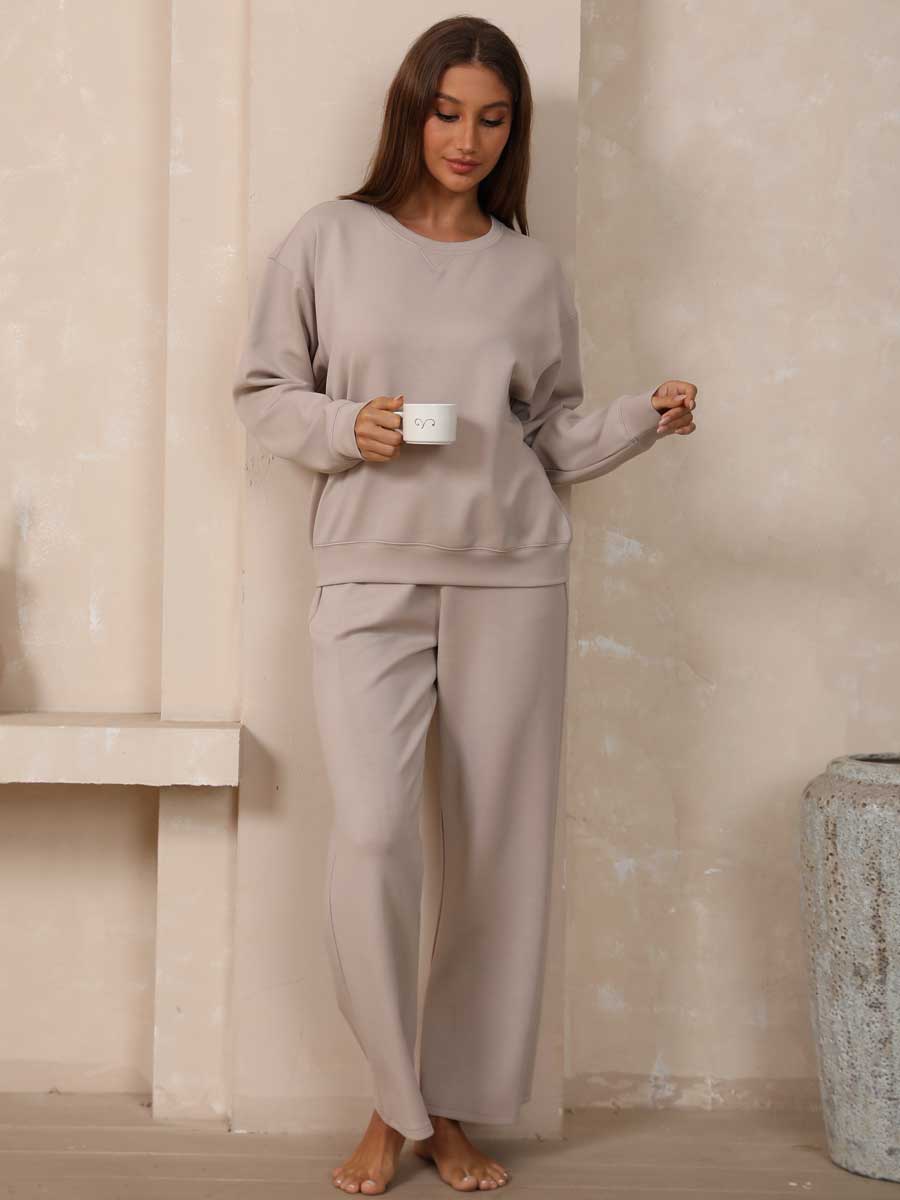 - Modal Soft Crew Neck Sweatshirt & Pants 2-Piece Set