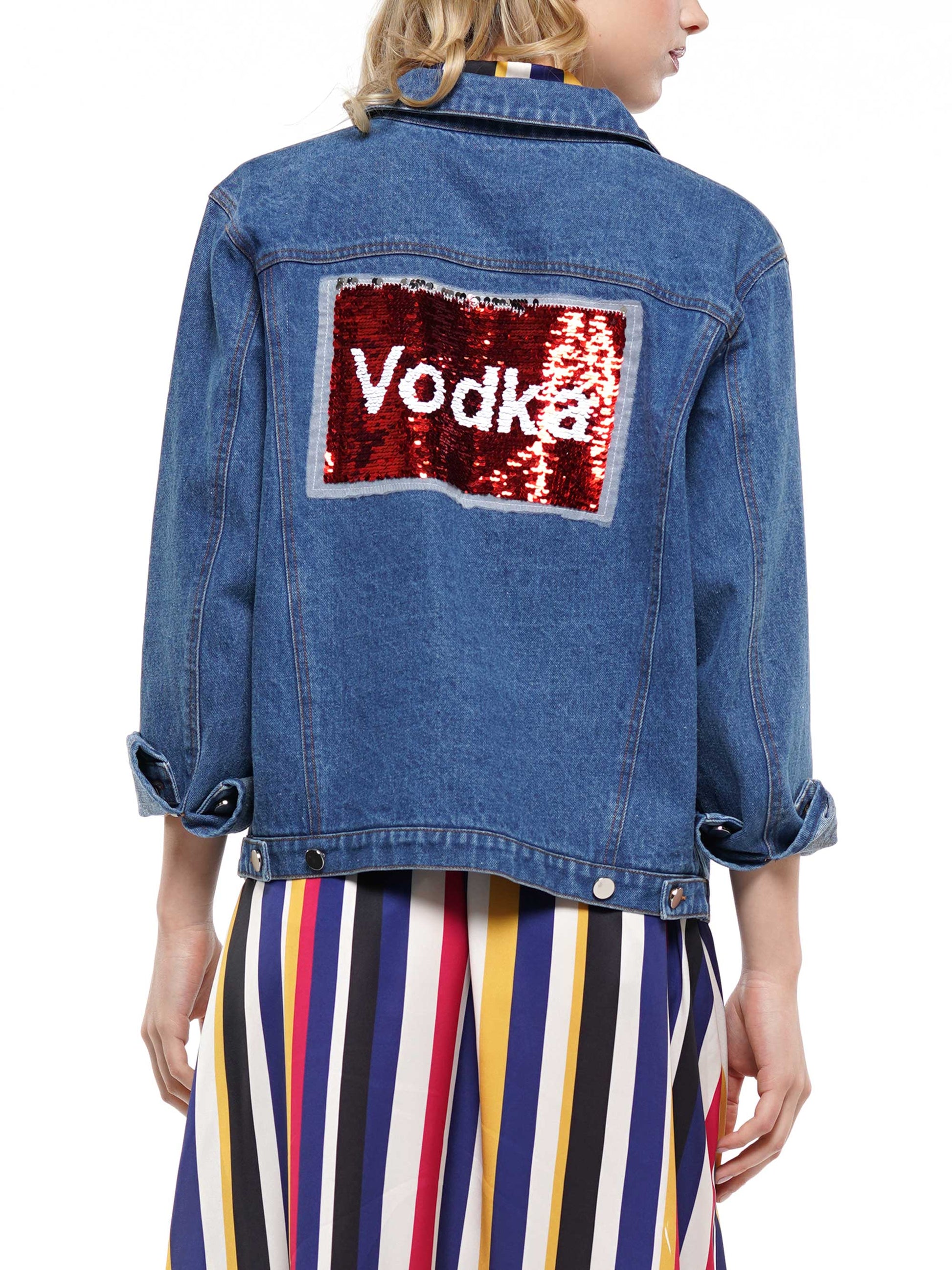 - Denim Jacket with Vodka Sequin Patch